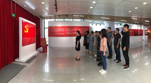 党支部成员依次参观了初心、担当、奋进、筑梦四个展区。在展区宣誓区,公司党委书记王丽玲带领支部党员,举起右拳,面向党旗,庄严宣誓,彰显了每一位党员坚守理想、秉持初心、恪守承诺,对党忠诚,为共产主义奋斗终生的信念。