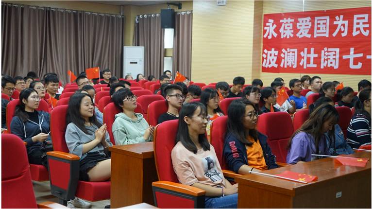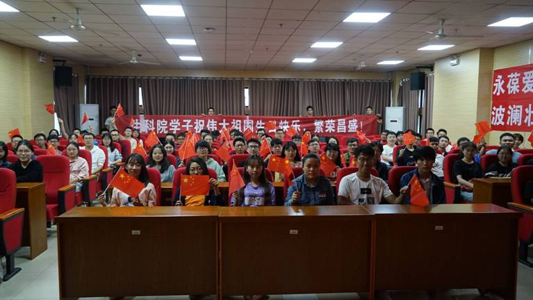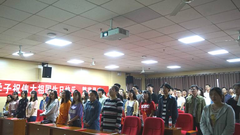观影结束后生科院学子组织告白祖国活动,集体心潮澎湃的喊出了生科院学子对祖国母亲的诚挚祝福。