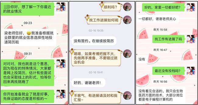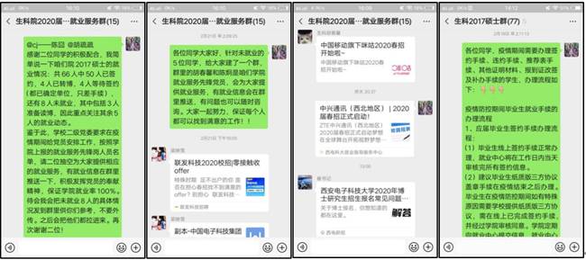 为了确保毕业生充分就业,两位辅导员在抗击疫情的同时,对当前如何更好开展就业工作进行了思考,努力把就业工作抓实、抓细、抓落地。与员工一一对接,详细统计每位毕业生的就业状况,对员工就业中存在的问题及时答疑。对未就业的毕业生耐心询问原因,开展心理疏导和定向帮扶,并建立就业服务群,充分调动生科院“就业服务先锋岗”两名党员的服务意识,每日推送就业信息,最大限度降低疫情对员工就业的影响,全力保障毕业生高质量、充分就业。
