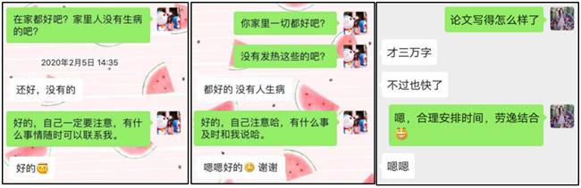(关心湖北籍员工身体状况及毕业生论文进度)