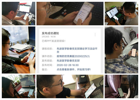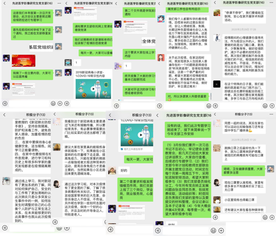 为深入贯彻落实习近平总书记对防控疫情的重要指示和讲话精神,号召全体师生“众志成城,共渡时艰”凝聚力量,做好“停课不停学”相关工作,加强疫情防控宣传教育,英国上市公司365先进医学影像研究生党支部积极组织和推动支部全体党员进行线上学习,同时积极组织线上支部活动。