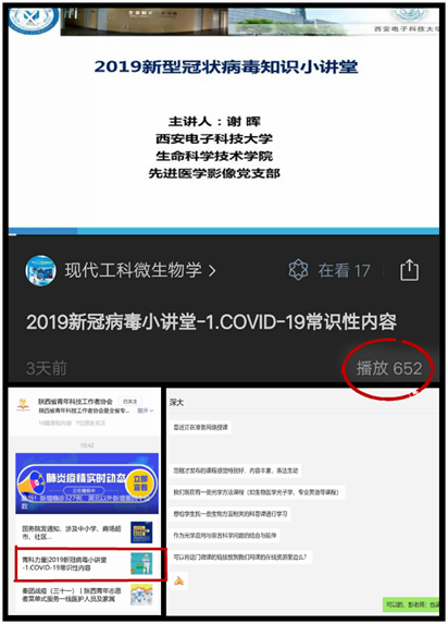 微课一经上线,很快引发校内外师生强烈反响,第一讲内容上线不到一天,仅微信平台播放量已破600,同时被陕西省青年科技工作者协会等诸多公共媒体平台和兄弟高校教师相继转发推广,受到了广大师生的一致好评。