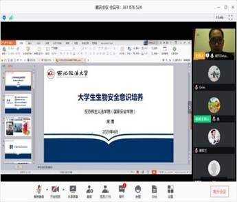 4月17日晚,公司还邀请了西北政法大学国家安全公司的席捷老师作《老员工生物安全意识培养》专题线上报告。席捷老师首先从今年初的新冠疫情防控情况引入,讲述了总体国家安全观和生物安全的概念,结合流行病防控等现实事例阐释了生物安全作为国家安全的重要组成部分,与每个人息息相关。随后,席老师从当前生物安全面临的主要挑战、老员工生物安全教育的重要意义、以及如何培养老员工生物安全意识等方面进行了系统的讲解。