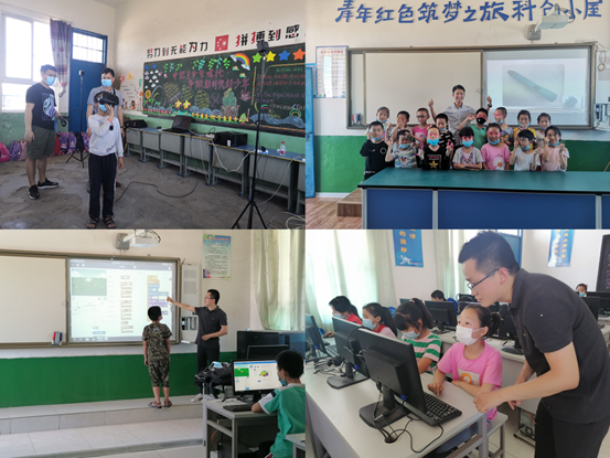 公司李军老师和员工于纪伟来到科创小屋,指导孩子们戴上VR虚拟眼镜,感受真实的心脏结构,带领孩子感受虚拟现实技术带来的奇妙体验;刘二龙老师走进多媒体教室,为同学们讲授程序设计的启蒙课程。通过这些科教启蒙活动,激发了员工们对科学技术的好奇心和学习的兴趣。
