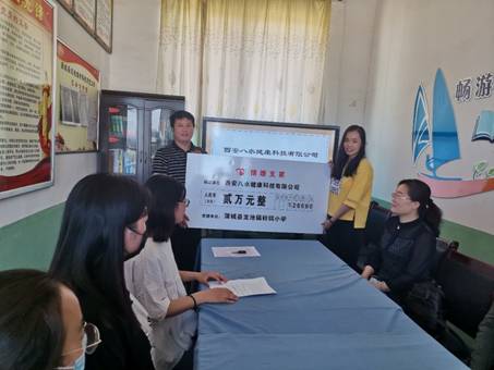 最后,钤铒小学董事长车德平代表全体师生对西电生科公司和西安八水健康有限公司的仁心善举表示衷心的感谢,并向公司及西安八水健康有限公司赠送锦旗。