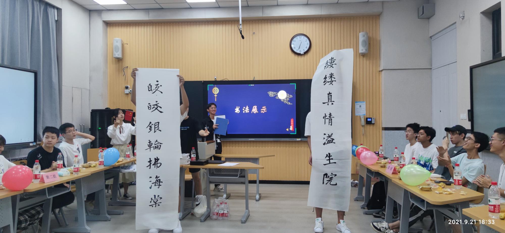 “十里不同风,百里不同俗”,两位同学介绍了自己当地的中秋习俗,更加深了大家对彼此的了解。接下来,大家都做了自我介绍。中秋佳节,当空皓月要有美味月饼为伴,这是镂刻在炎黄子孙血脉中的文化基因,同学们手中拿着香甜可口的月饼细细品尝,一瞬之间,仿佛与先贤隔空对话,探讨方以智,圆而神的哲学命题。接着进行了《夜空中最亮的星》大合唱、《遥远的你》独唱、《庆功酒》说唱,并进行了你画我猜、击鼓传花、听歌识曲等小游戏。游戏过程中大家各尽所能,获得了相应奖励或小惩罚,大家开心满怀,其乐融融。在同学们的欢声笑语中,茶话会落下了帷幕。
