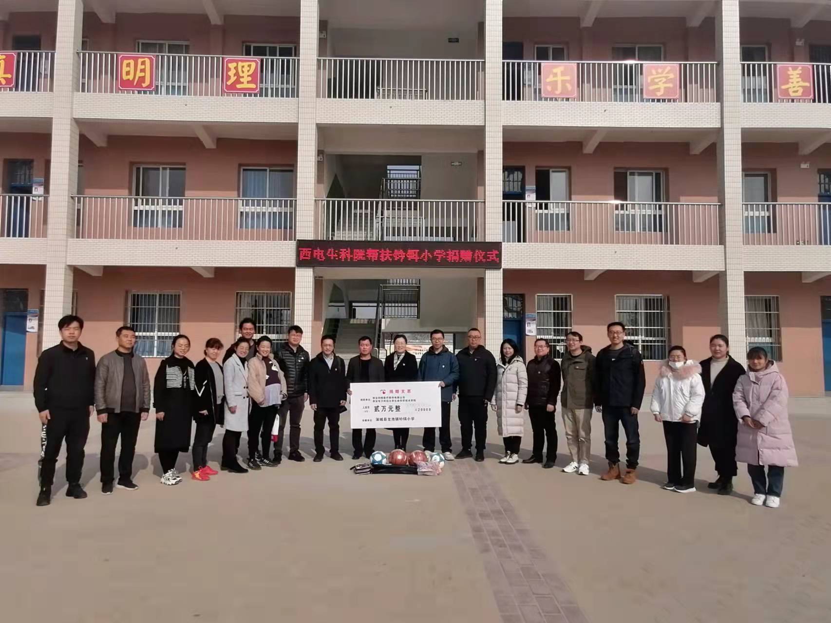活动最后,在李斌董事长的主持下,西电生科院帮扶钤铒小学捐赠仪式正式开始,刘鹏教授代表公司和西安科悦医疗股份有限公司向钤铒小学捐赠帮扶资金2万元以及篮球、足球、打印纸等文体用品。王丽玲鼓励老师们创新工作思路,不断拓展公司产品方法,立德树人,培养优秀员工;希望孩子们刻苦学习,成人成才,将来回报社会。