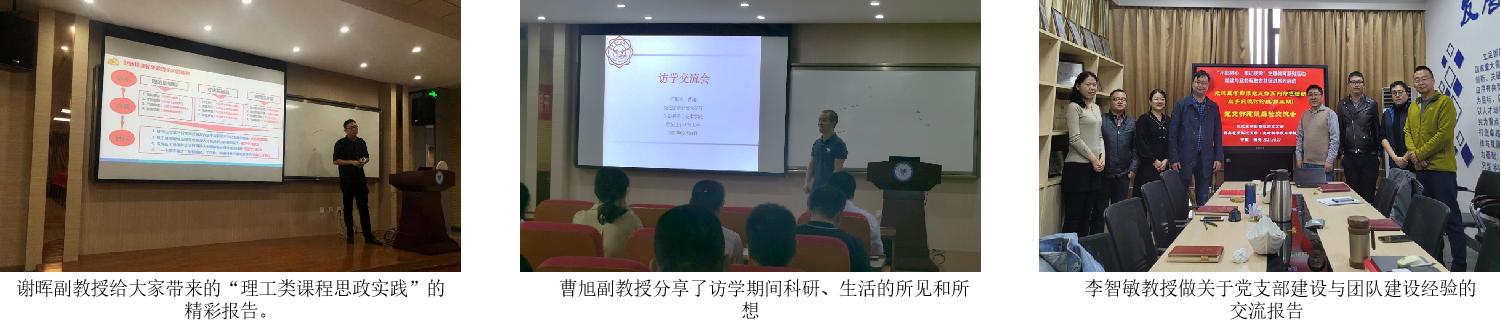 在9月6日的分享会上,谢晖副教授给大家带来的“理工类课程思政实践”的精彩报告。会后支部老师表示“谢晖老师给我们分享他多年以来的教学改革的心路历程和心得体会,非常受益”。会后,支部老师纷纷表示业务讨论班的形式非常好,“教育了集体,团结了集体,增强了集体。”在11月30日的报告中,董老师着重讲了关于科研产品转化过程中的难点和重点,专利保护和合作开发的心得体会,引发了支部内老师的共鸣,大家纷纷发言共同探讨解决上述“痛点”的方法。支部紧贴教师需求,发挥党员先锋岗的示范作用,利用支部内每名教师的特长和优势,搭建“面对面”交流平台,拓展互帮互助的帮扶机制,力争支部全体教师共同成长。