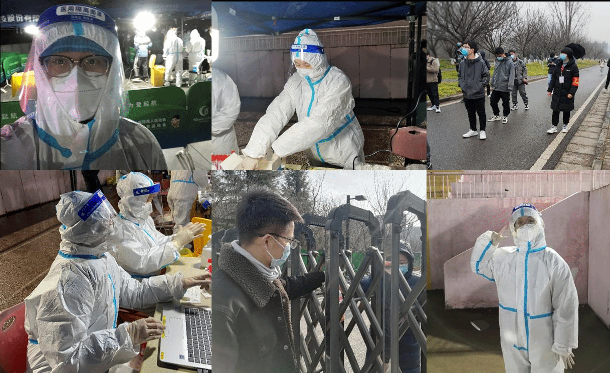 为助力疫情防控,先进医学影像党支部积极响应公司党委号召,鼓励广大师生投身疫情防控阻击战中,支部成员奋勇当先,积极报名参加公司疫情防控先锋队,短短20分钟内,志愿者报名人数达二十多人。支部员工党员夏冉同学、入党积极分子李奇烛同学、课题组关慧迪、张鹏源同学化身抗疫先锋“大白”,在寒风中承担起核酸检测信息录入工作;员工党员王其滨同学主动参与给家属区居家人员送餐工作;教师党员詹勇华同志奔赴一线,投身封控区考生接送工作;团队教师曾琦副教授在北校区社区被确定为重点地区需每天开展核酸检测而人手紧缺的情况下,毅然选择参加志愿服务,参与核酸检测组信息录入工作。志愿者们以“奋斗者”姿态践行战疫誓言,为疫情防控构筑一道道坚实屏障,为打赢疫情阻击战贡献一份绵薄力量。
