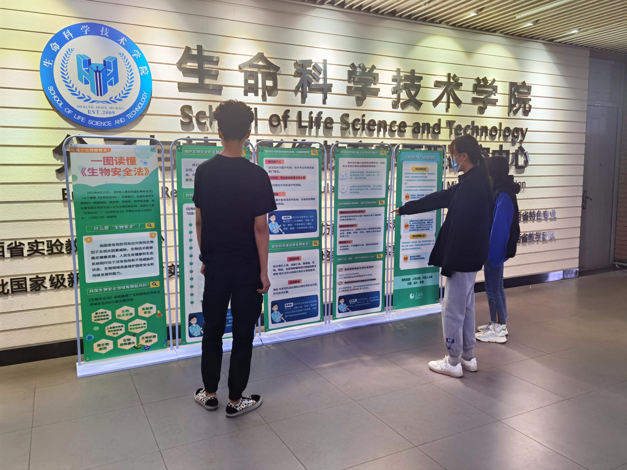 为增加生物安全普及的趣味性,公司制作了精美的展板,以图文并茂的形式,直观展现了生物安全的概念,旨在多维度、全景式地宣传展示生物安全体系,吸引了众多同学围观学习,大家在趣味中了解《生物安全法》,进一步理解国家安全的内容。