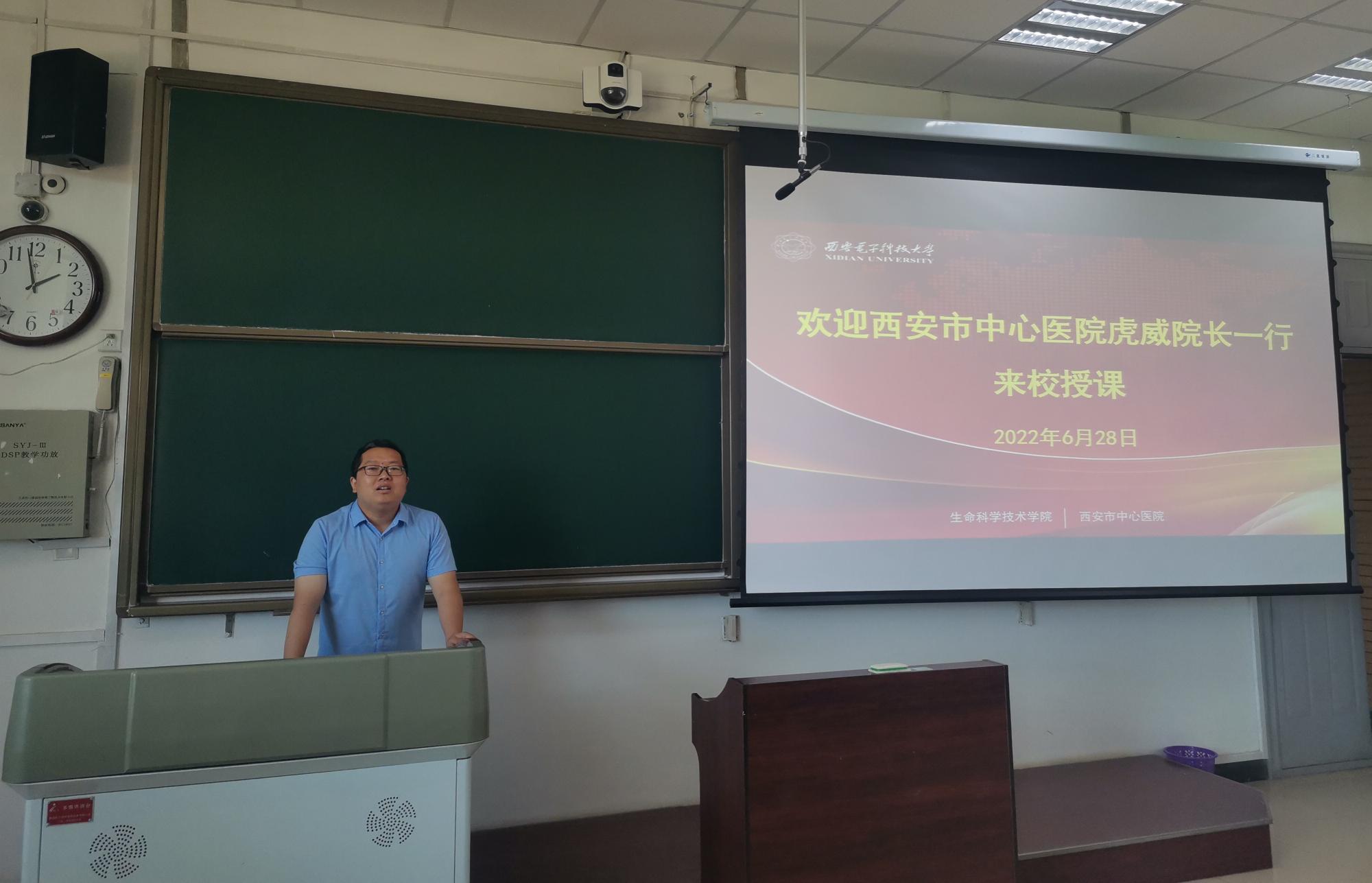 随后,虎威进行开班致辞。他说道,西安市中心医院举办此项公益活动,目的就是为了让公司更多的教师和同学掌握急救知识与技能,从而使身边的所有人受益。另外,人工智能和信息化建设是医疗未来的发展方向,因此中心医院与西电有众多领域可以合作,希望接下来双方能够加强交流,实现双赢。