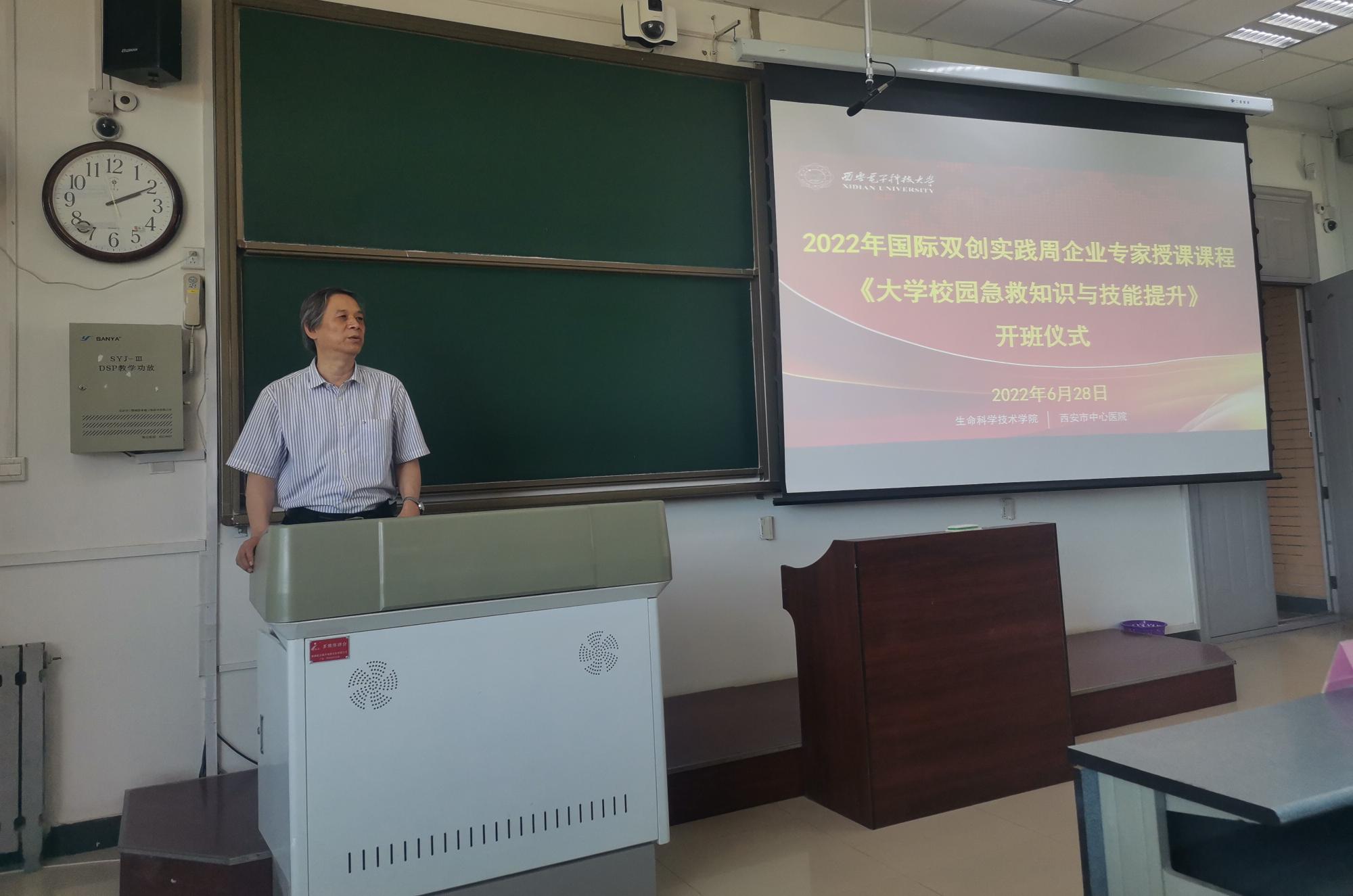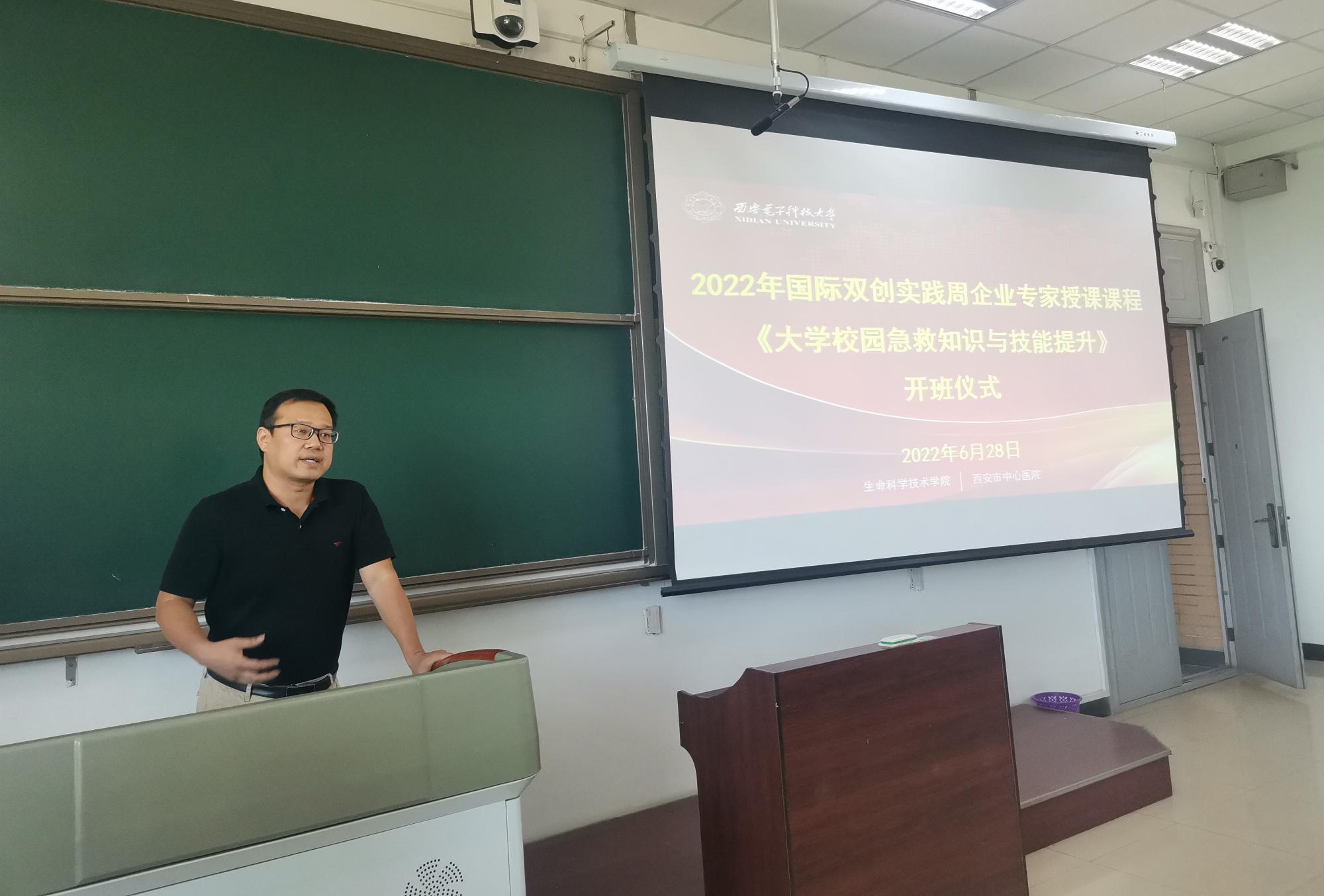 6月28日下午14:00,该课程开班仪式在B楼706教室举行,本科生院运行中心主任、教务处副处长张宇鹏,生命科学技术公司党委副书记崔传贞、副经理朱守平、分子与神经影像教育部工程研究中心常务副主任秦伟、课程责任教师曹旭,西安市中心医院经理虎威、副经理郭华、急诊科护士长李莎、科教科科长郑南波一行及全体上课员工共同见证了此次开班仪式。开班仪式由崔传贞主持。