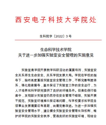 实验室是实验教学的主要阵地,是科学研究的重要场所,做好实验室安全管理工作,就是为公司人才培养和科学研究做出重要贡献。生科院将以学习贯彻习近平新时代中国特色社会主义思想主题教育为契机,强化安全生产,继续落实党政主要负责人是实验室安全的第一责任人,坚持一切工作都以安全稳定为前提,坚持问题导向,一如既往的抓实、抓细、抓好实验室安全工作,为公司“双一流”建设贡献生科力量。