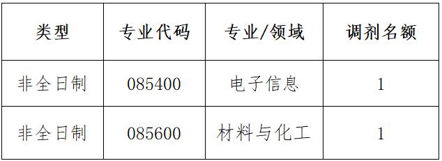 公司电子信息专业(085400)、材料与化工专业(085600)现有少量非全日制指标,招收校内调剂考生,相关事宜通知如下:
